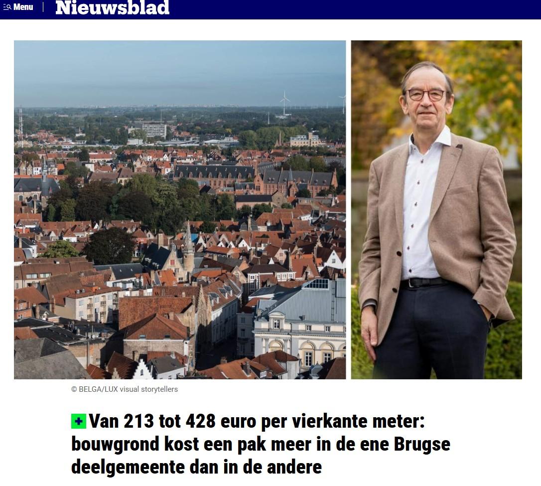 - Theuns, K. & Neirynck, P. (2026, 11 april). Van 213 tot 428 euro per vierkante meter: bouwgrond kost een pak meer in de ene Brugse deelgemeente dan in de andere. Het Nieuwsblad. (https://www.nieuwsblad.be/regio/west-vlaanderen/regio-brugge/brugge/van…)