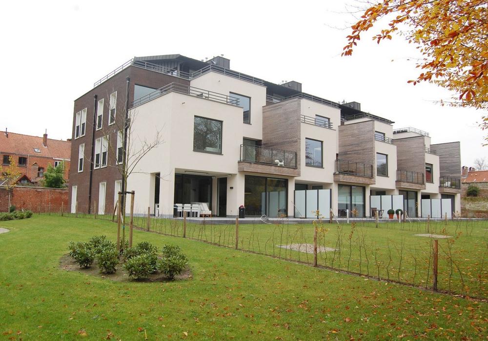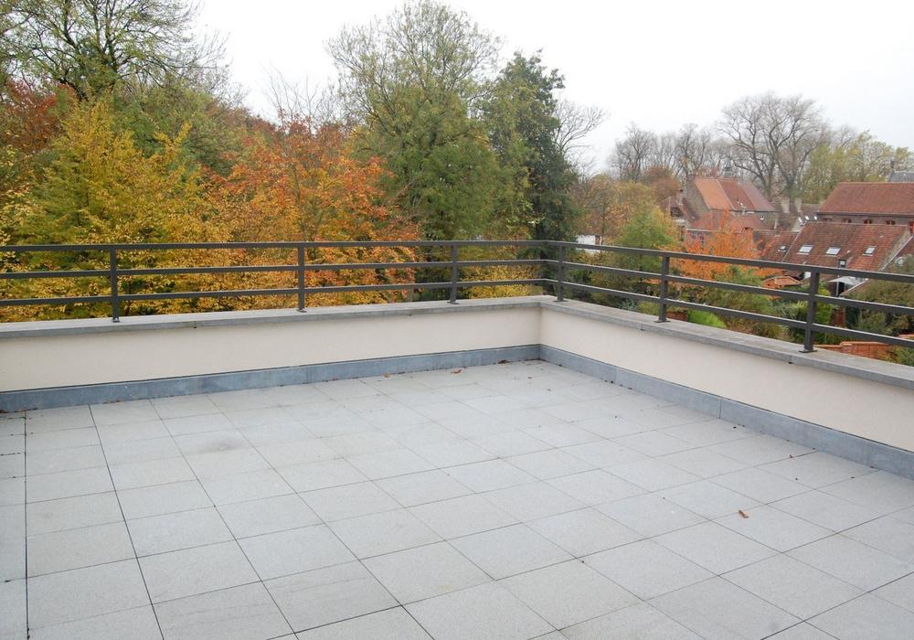 Exclusief hoekappartement in Residentie Minnewaterpark. Met ruime inkomhall met berging, fantastische 2-delige leefruimte met open keuken, 2 slaapkamers met ingemaakte kast, wasplaats, badkamer met design lavabo en inloopdouche, ruim en zonnig terras van 27 m². Modern appartement met hoge en zeer kwalitatieve afwerkingsgraad
