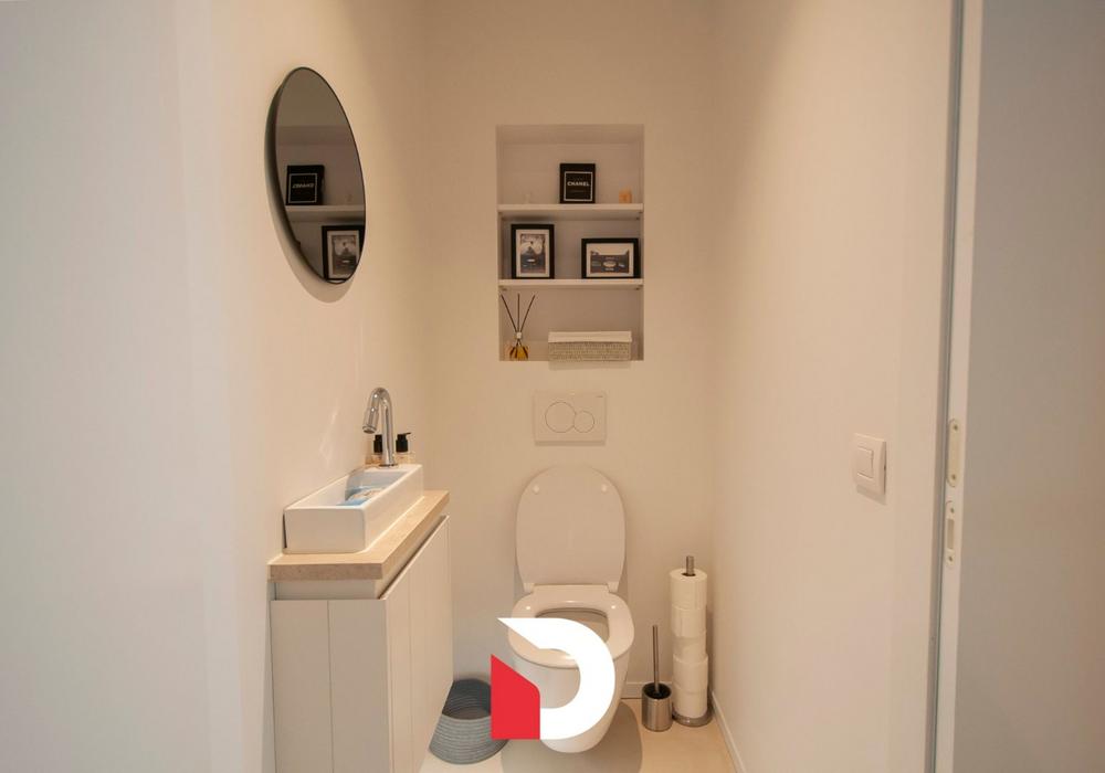 Het appartement beschikt over twee ruime slaapkamers en een extra kamer die perfect kan dienen als bureau, dressing of logeerkamer. Er is een tweede terras toegankelijk vanaf de slaapkamer. De badkamer heeft een mortex afwerking, een dubbel lavabomeubel en een ruime inloopdouche. Er is eveneens een douchekamer aanwezig.