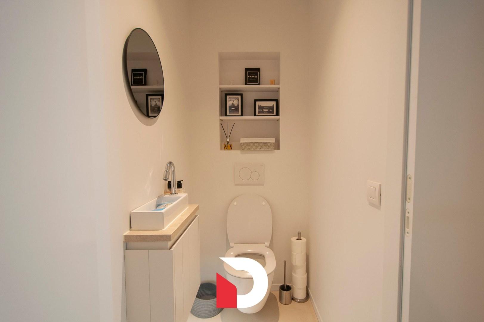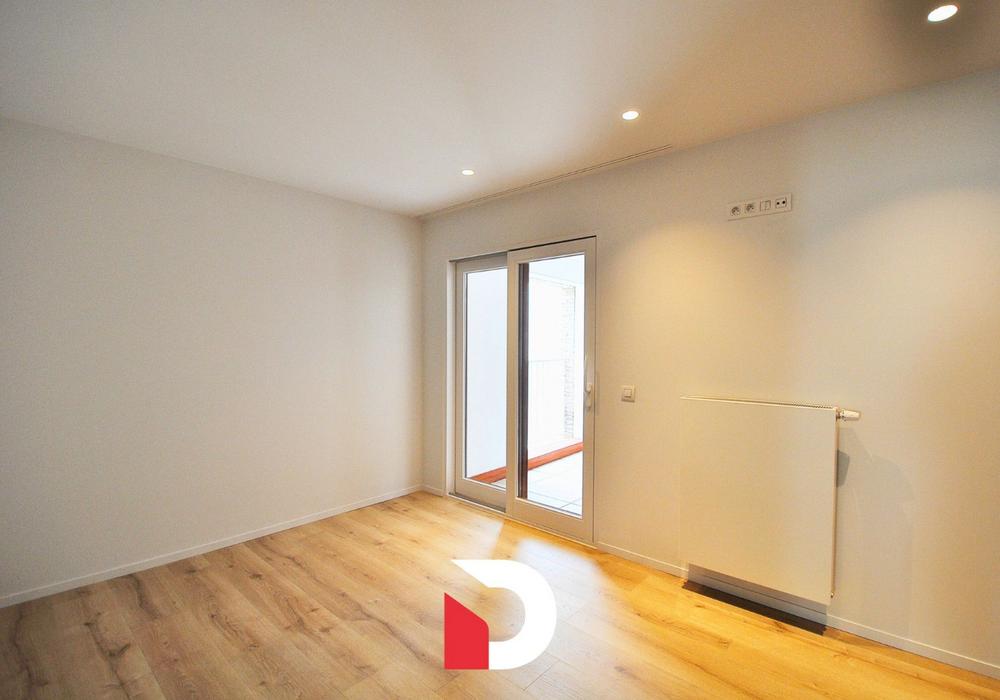 De indeling omvat een ruime leefruimte met parketvloer, die uitgeeft op het zonnige terras. De volledig ingerichte keuken is uitgerust met kwalitatieve toestellen en biedt alle comfort.