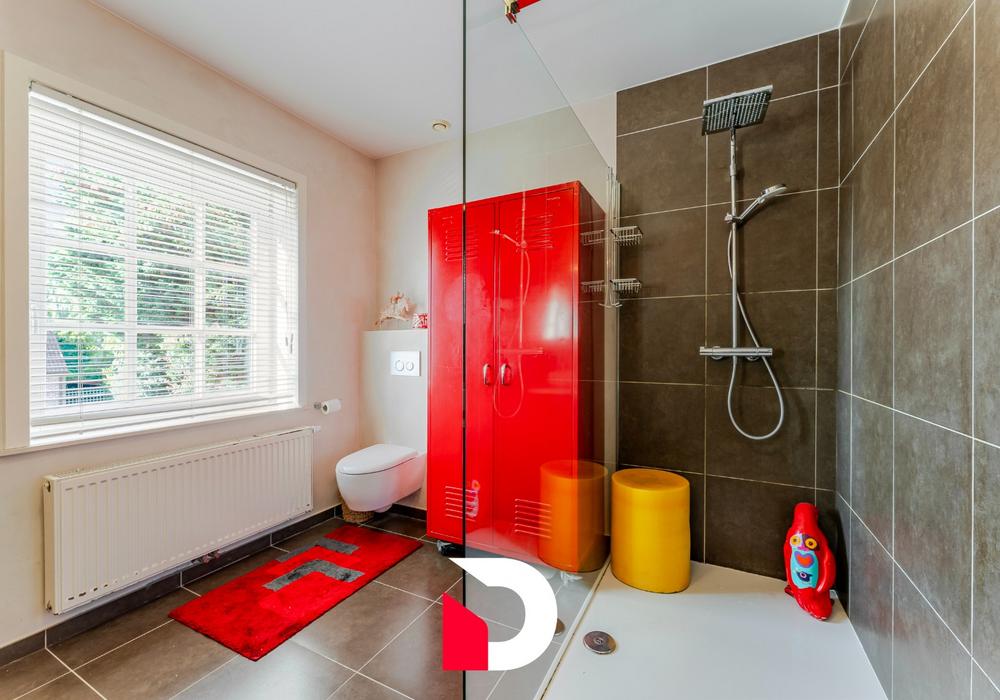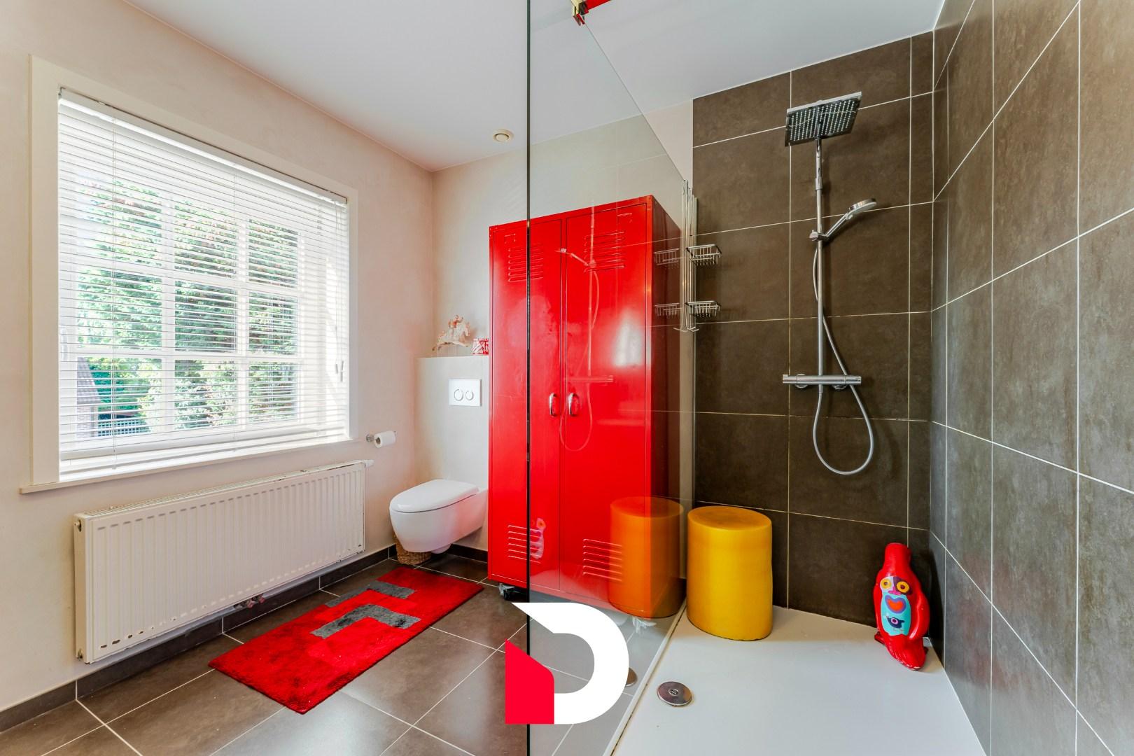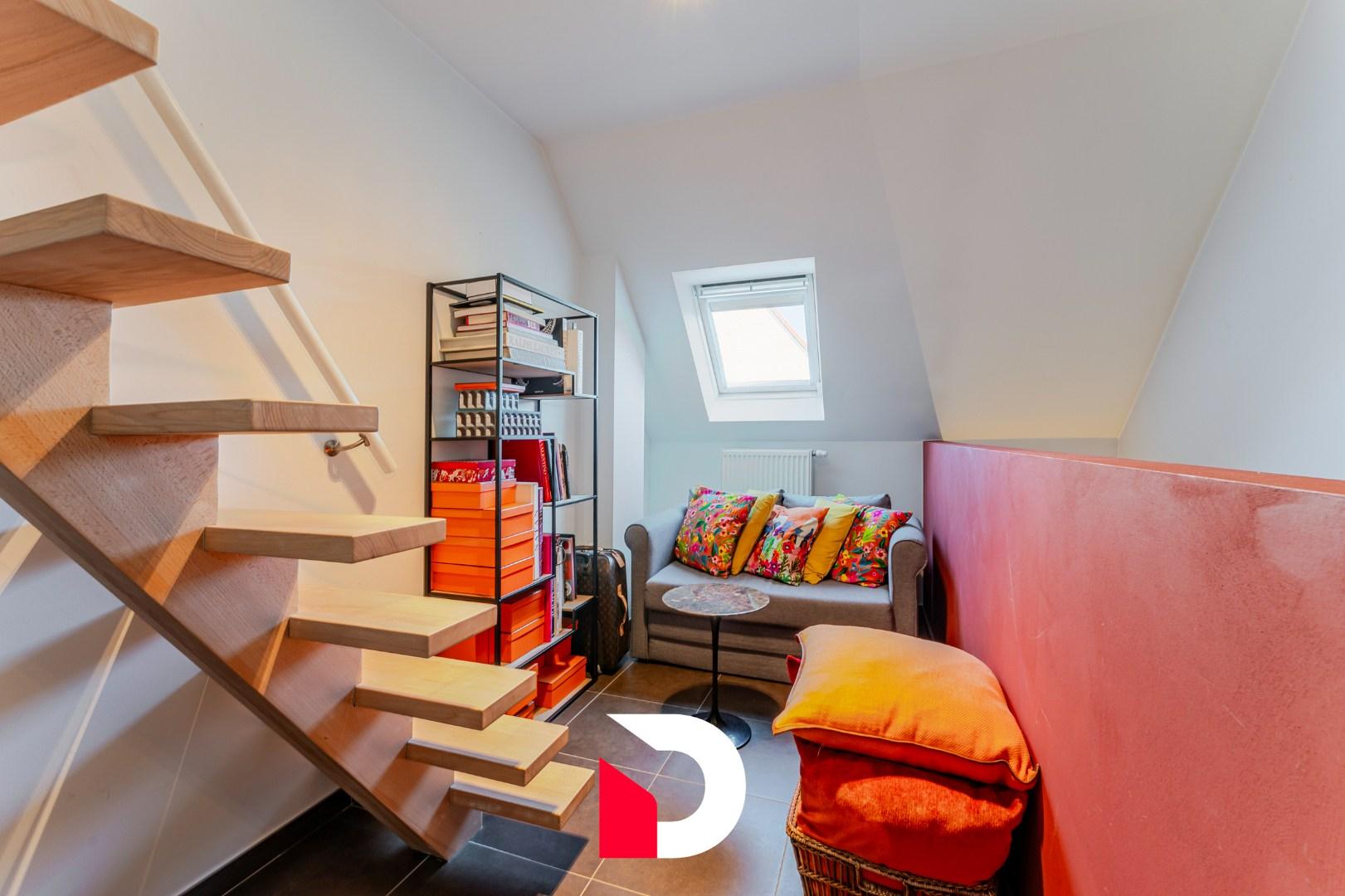 Op de eerste verdieping vinden we een riante overloop terug, masterbedroom met annex dressing (of mogelijkheid tot extra slaapkamer) en ruime badkamer.