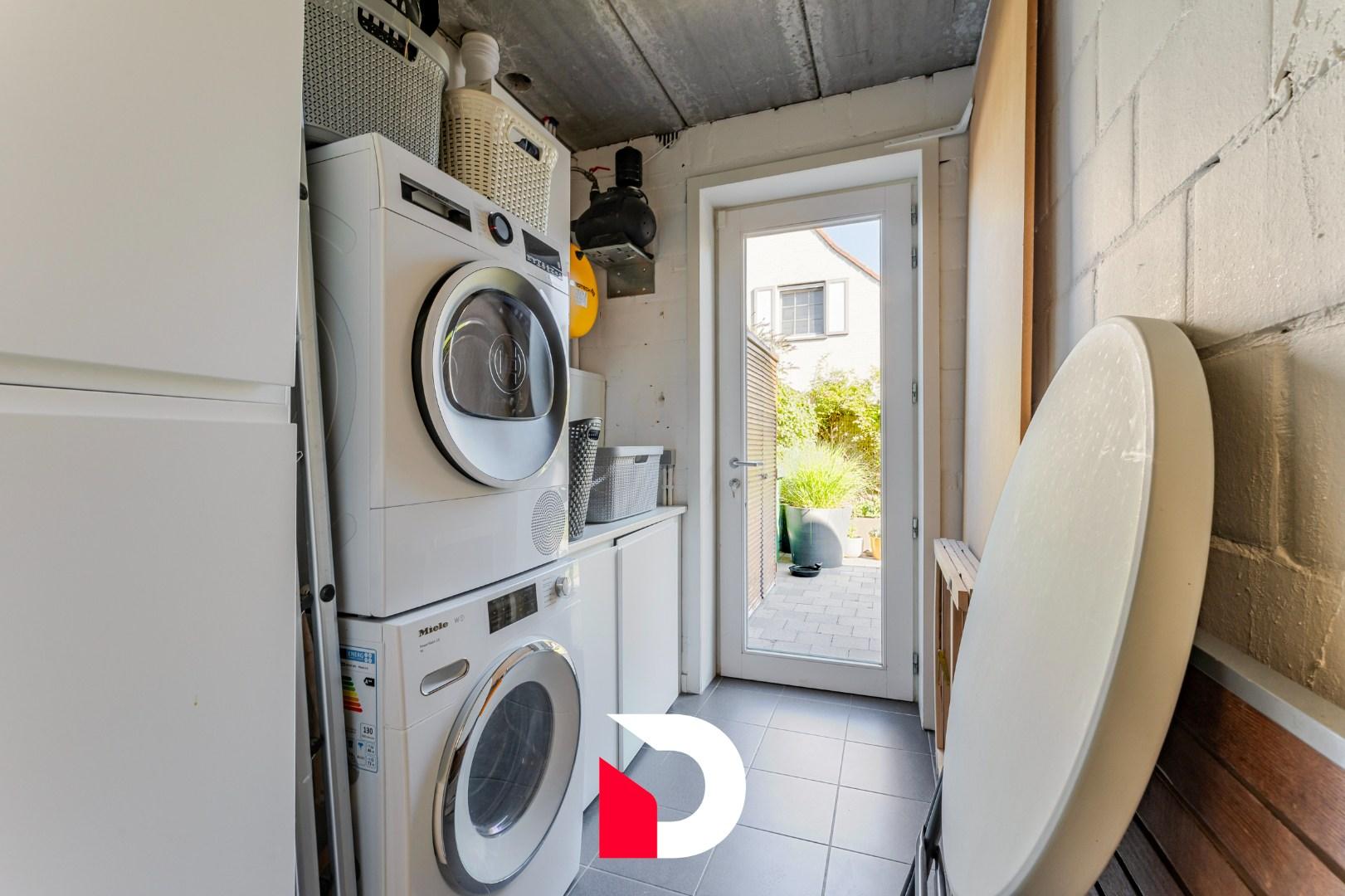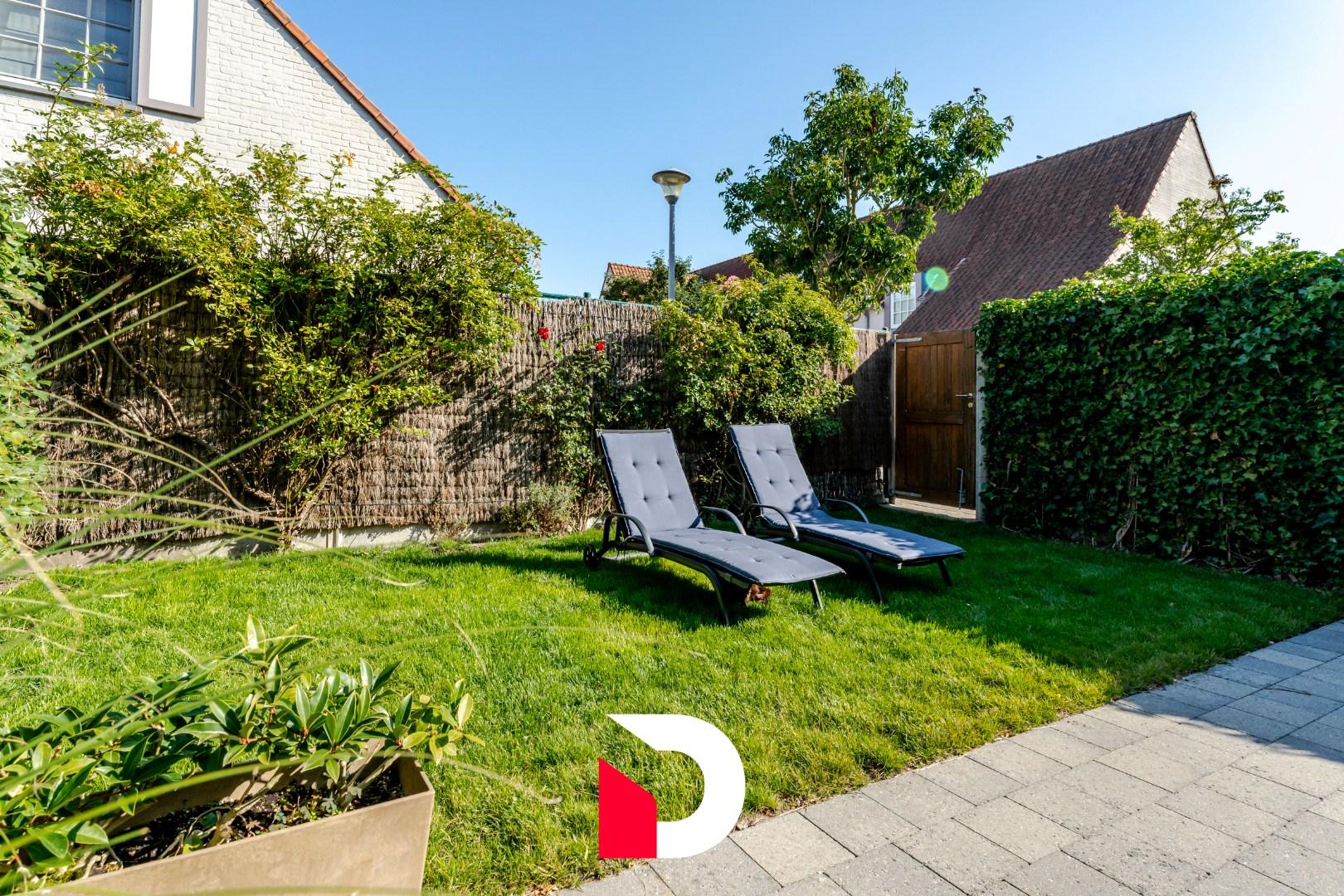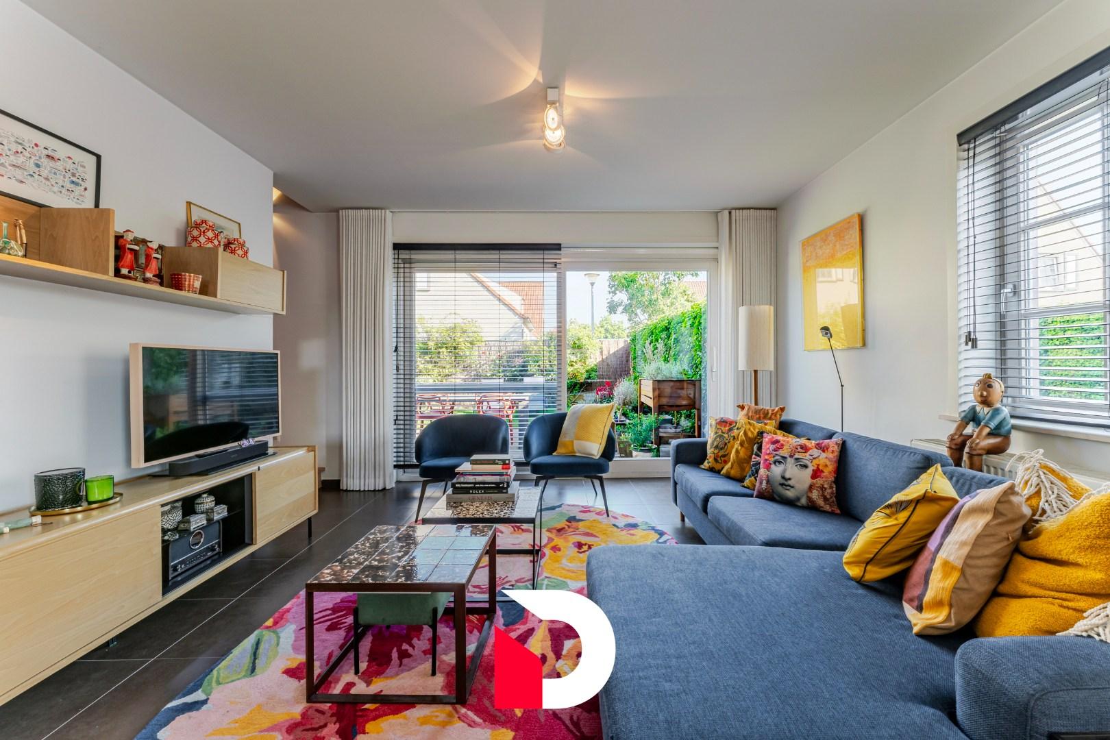 Via een praktische inkomhal met vestiairekast en gastentoilet komen we de woning binnen, voorts is er een lichtrijke leefruimte (met zithoek en eetplaats) en naastgelegen halfopen keuken, voorzien van inbouwtoestellen. Vanuit de leefruimte is er aangenaam zicht op de gezellige tuin met terras en praktisch zijpoortje.