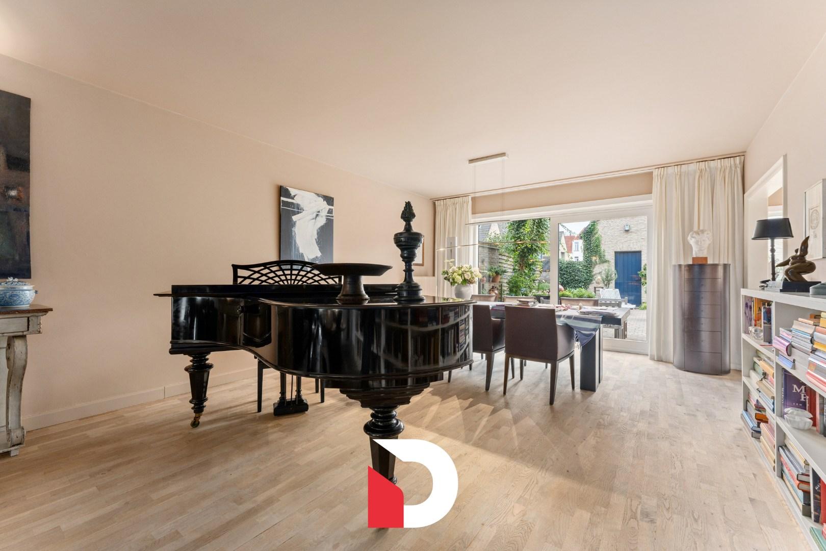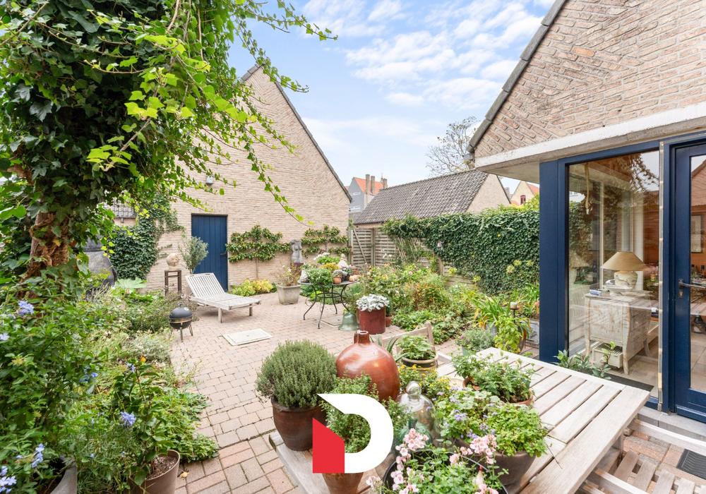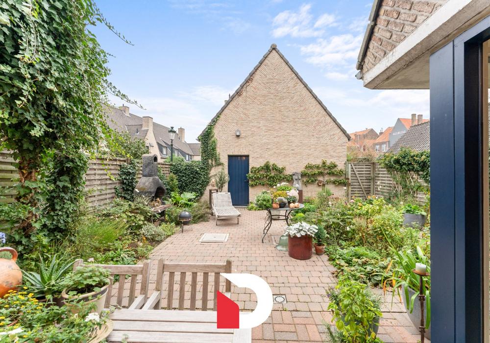 De woning verwelkomt je met een ruime inkomhal met ingebouwde kasten en apart toilet. De doorlopende leefruimte en keuken bevinden zich aan de tuinzijde, waardoor het geheel baadt in natuurlijk licht en uitkijkt op het groen. De keuken sluit aan op een praktische berging en kelder en biedt directe toegang tot de een private buitenruimte midden in Brugge.