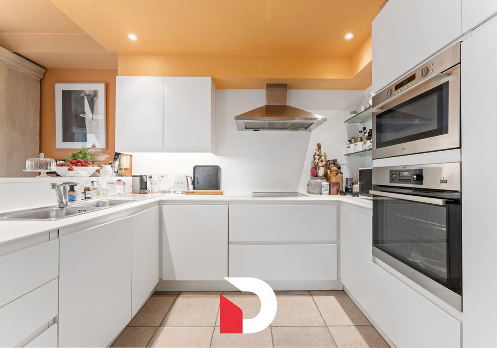 Als extra troef beschikt de woning over een private garage, rechtstreeks toegankelijk via de tuin, een absolute zeldzaamheid op deze toplocatie!