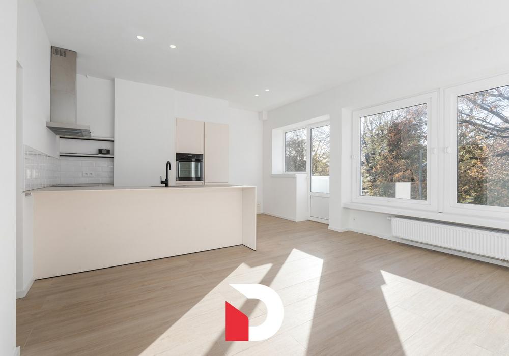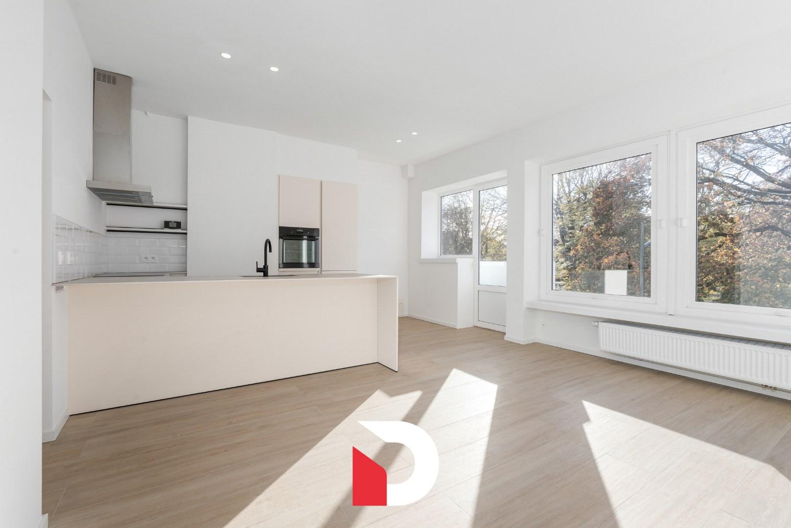 Het lichtrijke appartement werd volledig gerenoveerd en straalt ruimte en functionaliteit uit en geniet een uiterst aangename licht –en zichtbeleving over het park.