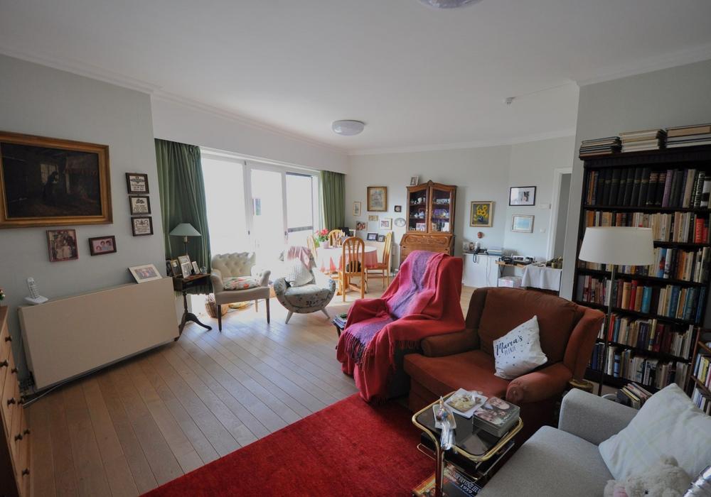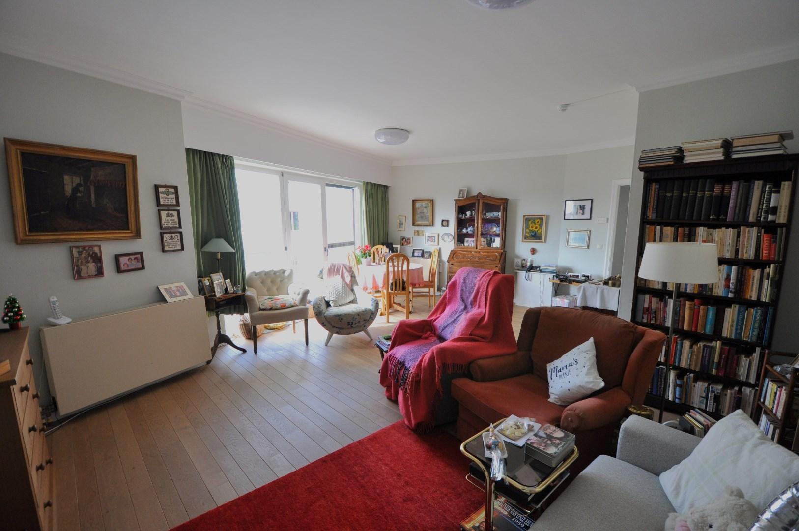 Het appartement is gelegen aan de achterzijde van het gebouw op de tweede verdieping met zicht op "de kleine binnentuin", en beschikt over een ruime leefruimte met terras, 1 slaapkamer, en een vernieuwde badkamer. Het appartement werd recentelijk voorzien van nieuwe parketvloeren, en verkeert in een instapklare toestand. In de prijs is ook een ondergrondse berging inbegrepen.