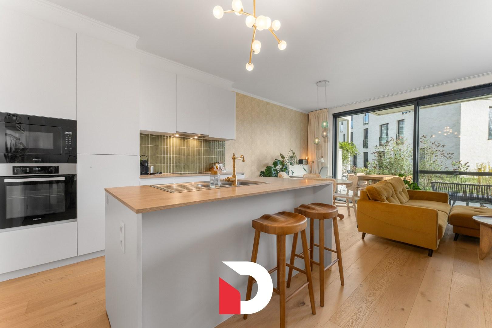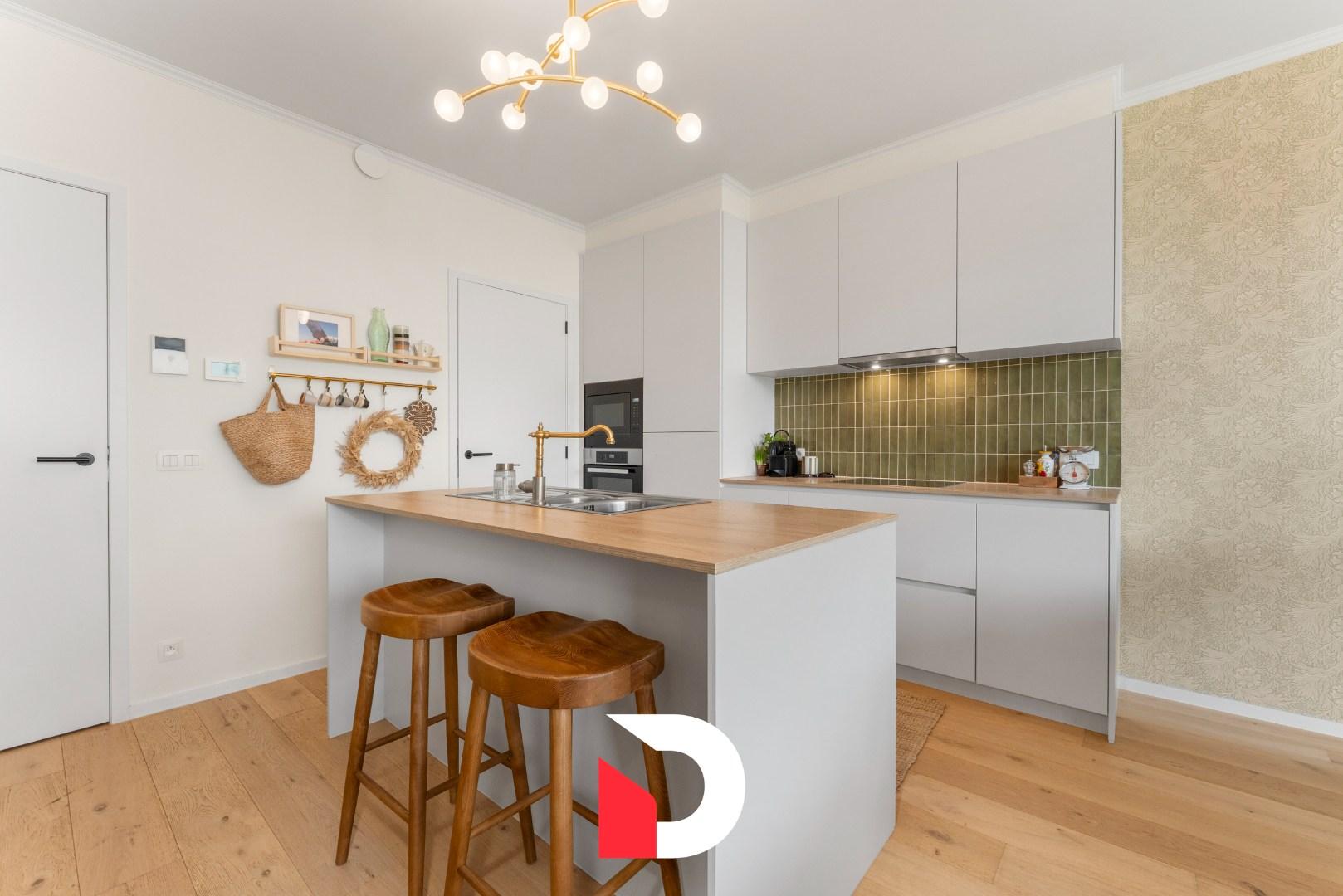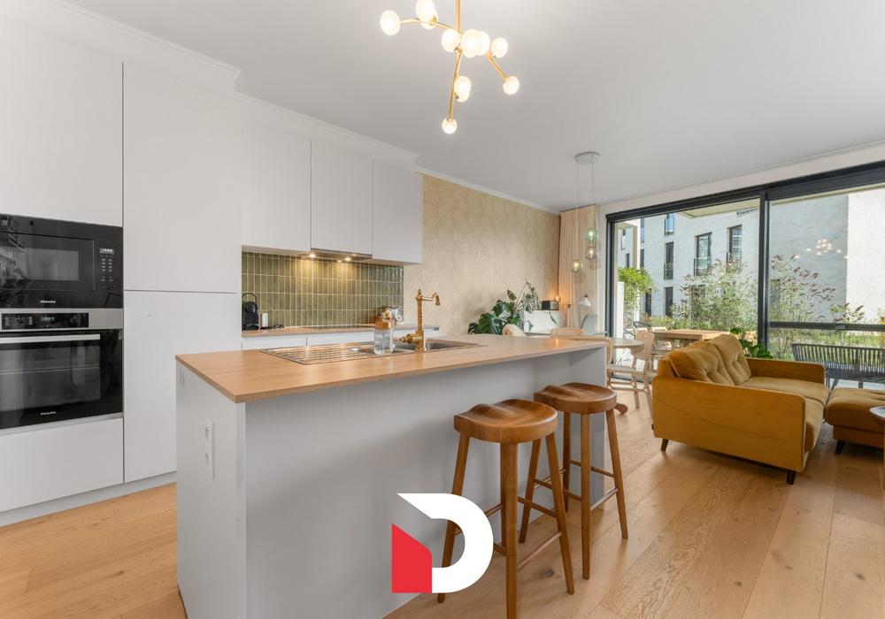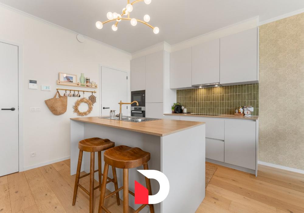 Dit klassevol afgewerkt appartement werd opgeleverd in 2022 en heeft een E-peil van maar liefst E34. Bij de afwerking kozen de huidige eigenaars voor warme en tijdloze materialen zoals parket en kwalitatieve keukentoestellen.