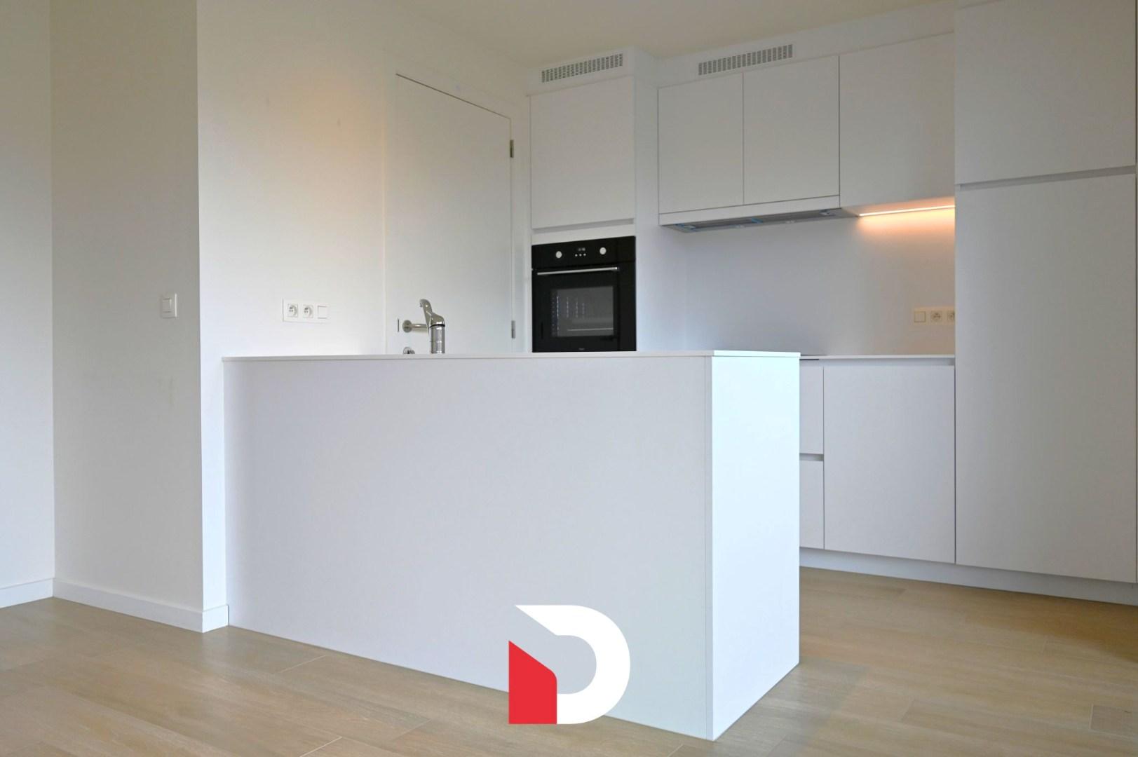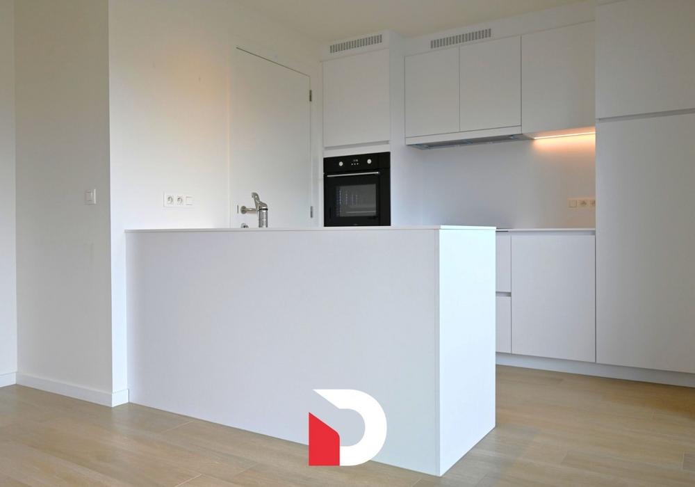 Dit recente appartement heeft een oppervlakte van 84,5 m² + ruim zonneterras van 14 m². Er is een uiterst gezellige leefruimte aanwezig opgesplitst in een zithoek, eetplaats en halfopen keuken die veel natuurlijke lichtinval geniet. Annex keuken is er nog een praktische berging.