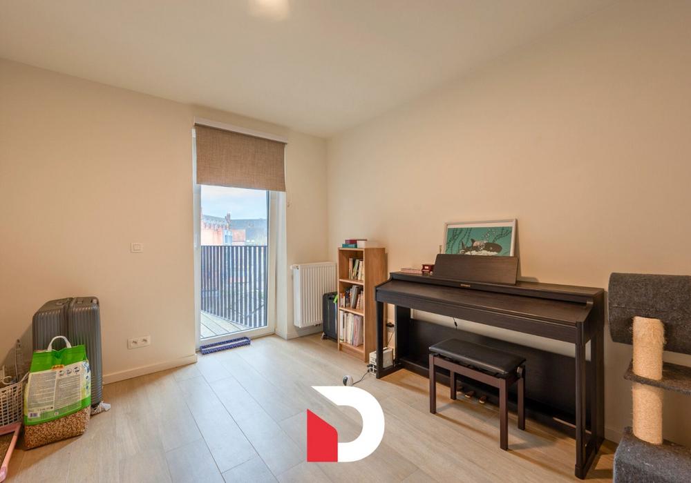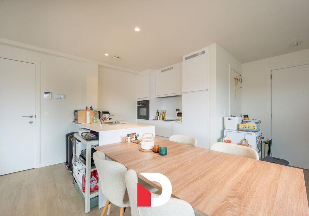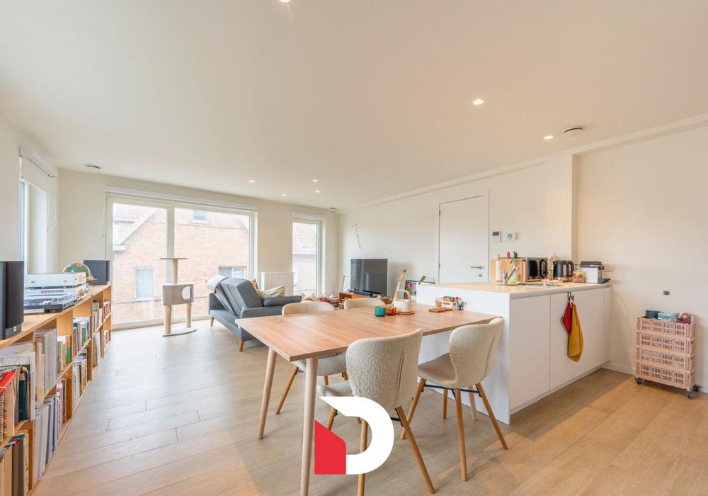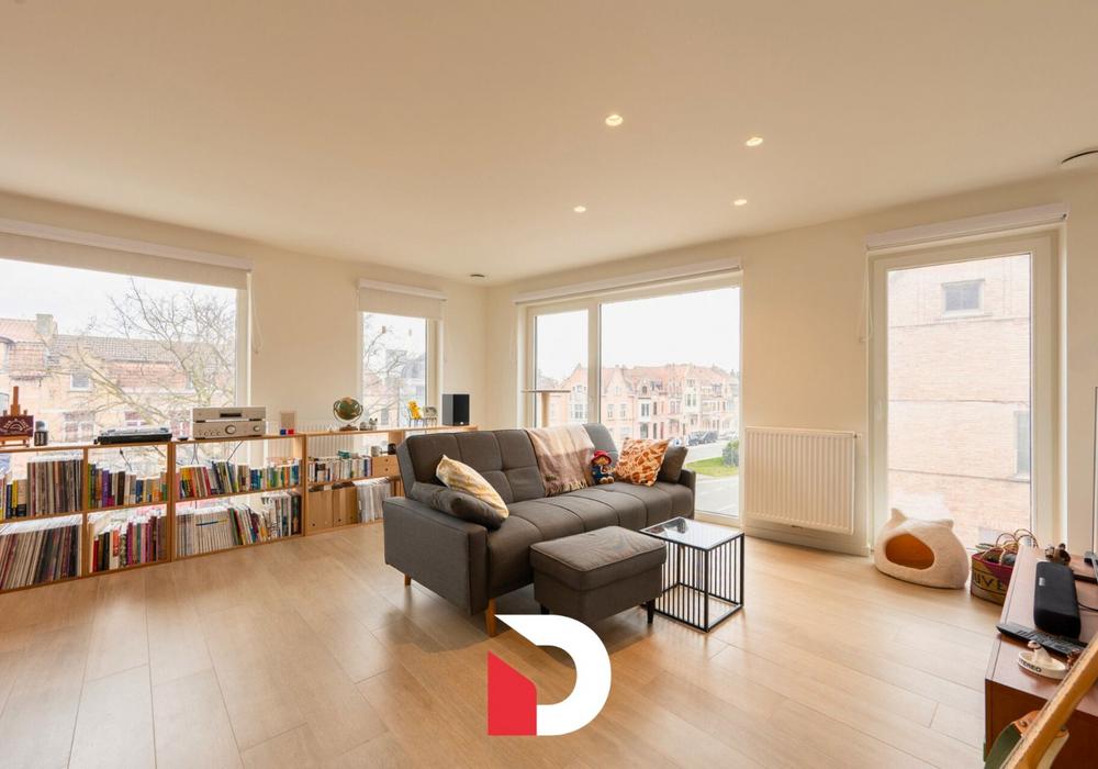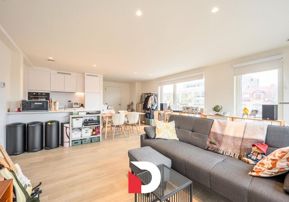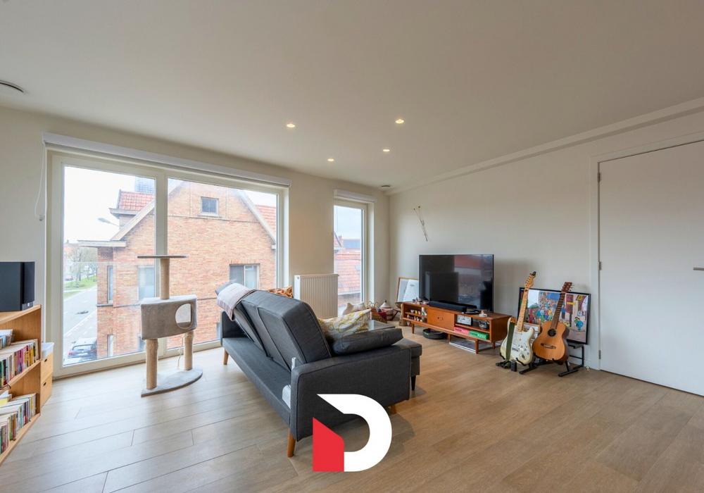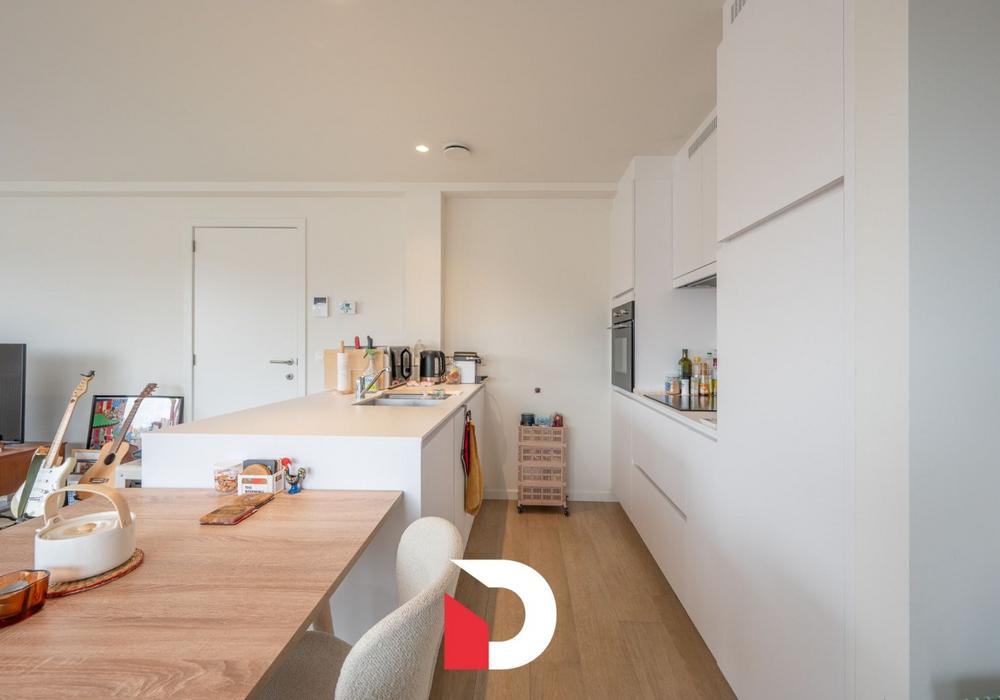 Dit recente appartement is gelegen op de hoek van de 2e verdieping en heeft een oppervlakte van 92,17 m² + ruim zonneterras van 9,46 m². Er is een uiterst gezellige leefruimte aanwezig opgesplitst in een zithoek, eetplaats en halfopen keuken die veel natuurlijke lichtinval geniet. Annex keuken is er nog een praktische berging.