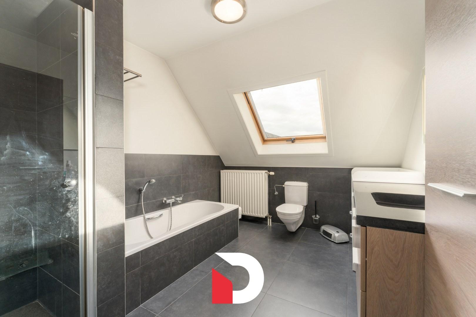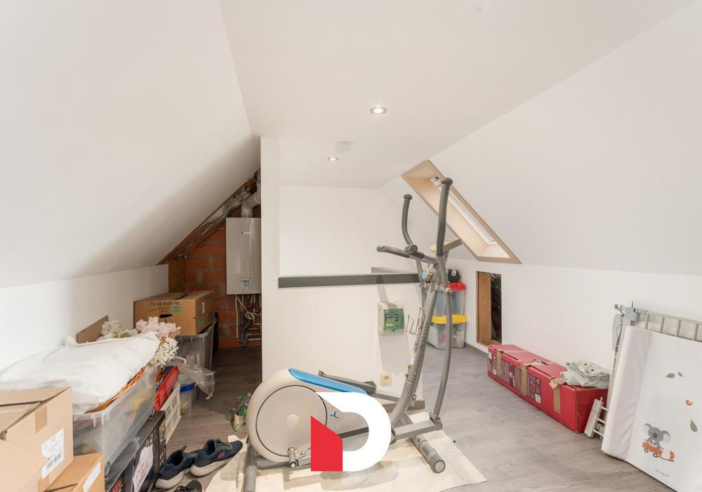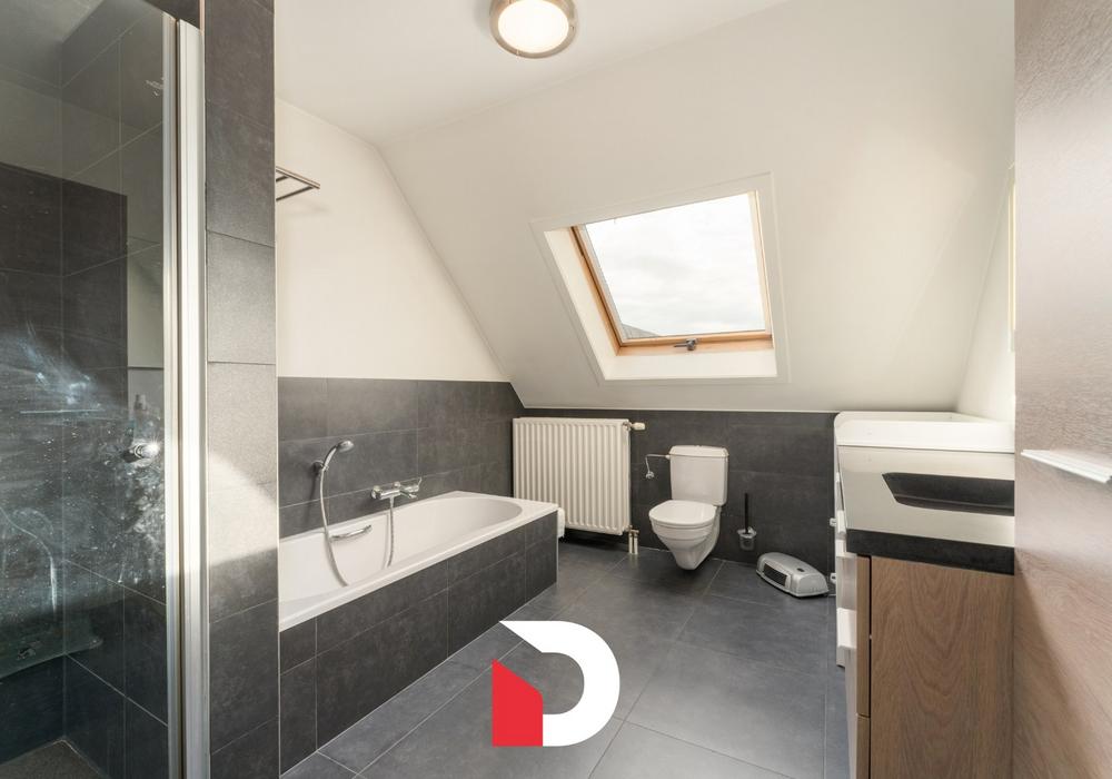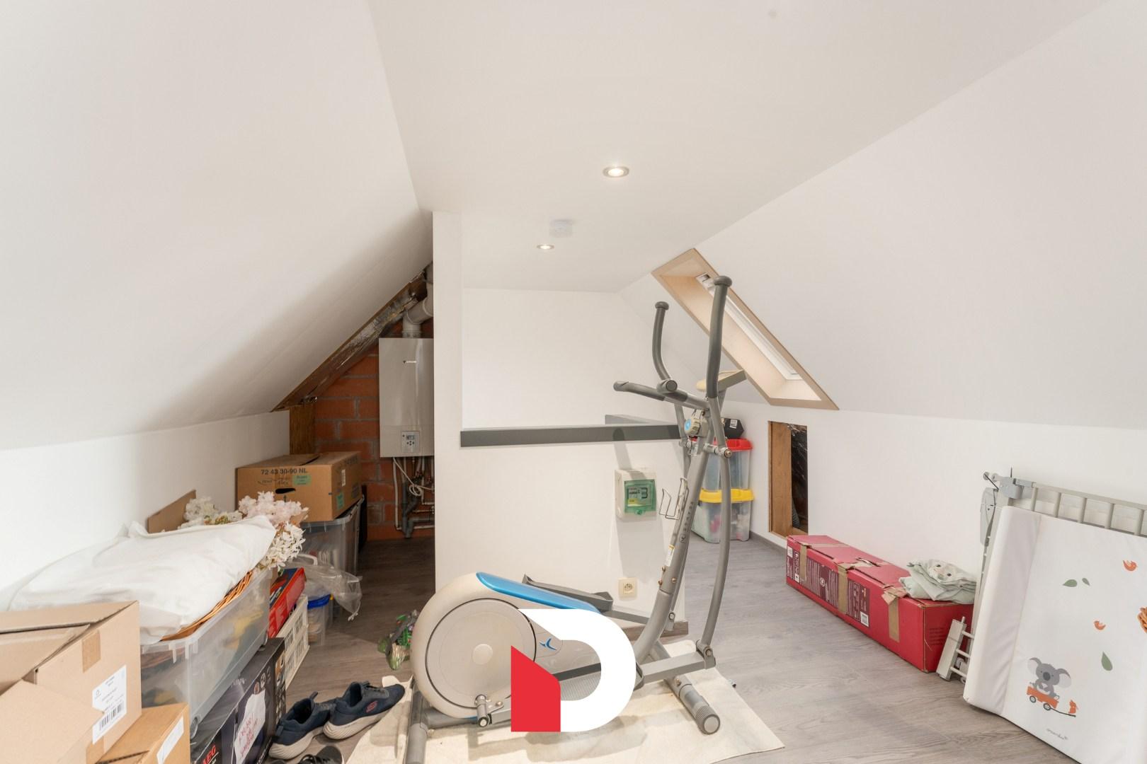 Op de eerste verdieping zijn er 3 volwaardige slaapkamers en een gerenoveerde badkamer voorzien van een douche EN ligbad en toilet. Er is een vaste trap die toegang geeft tot de zolder die recent ingericht werd als een 4de slaapkamer / bureelruimte. Op deze manier wordt iedere cm van de woning uiterst functioneel benut.