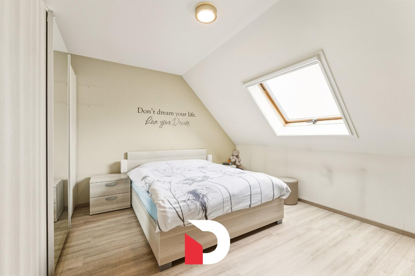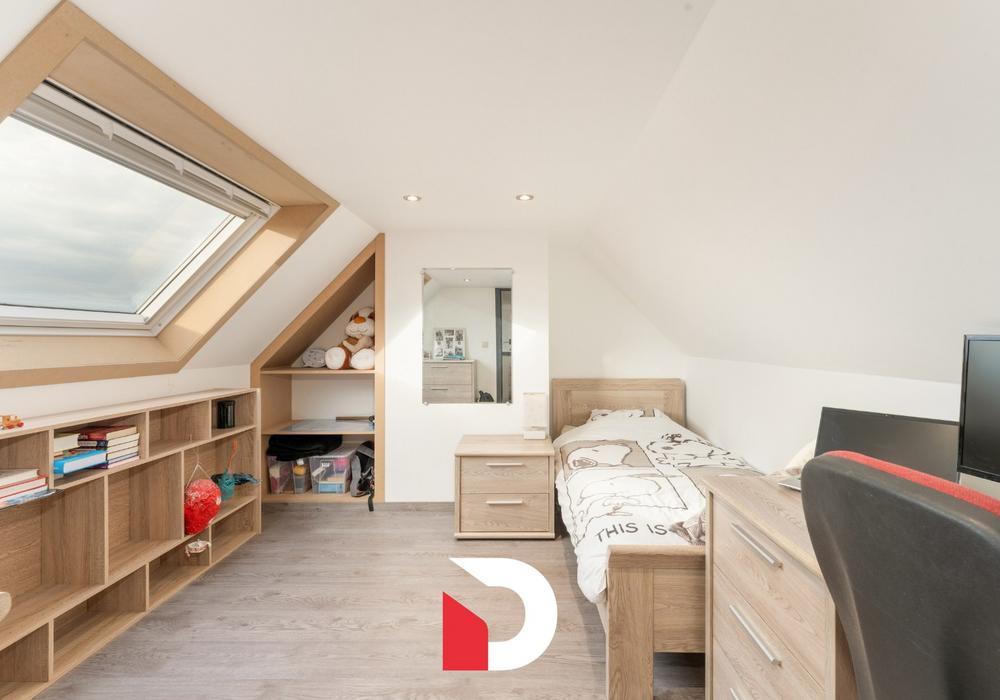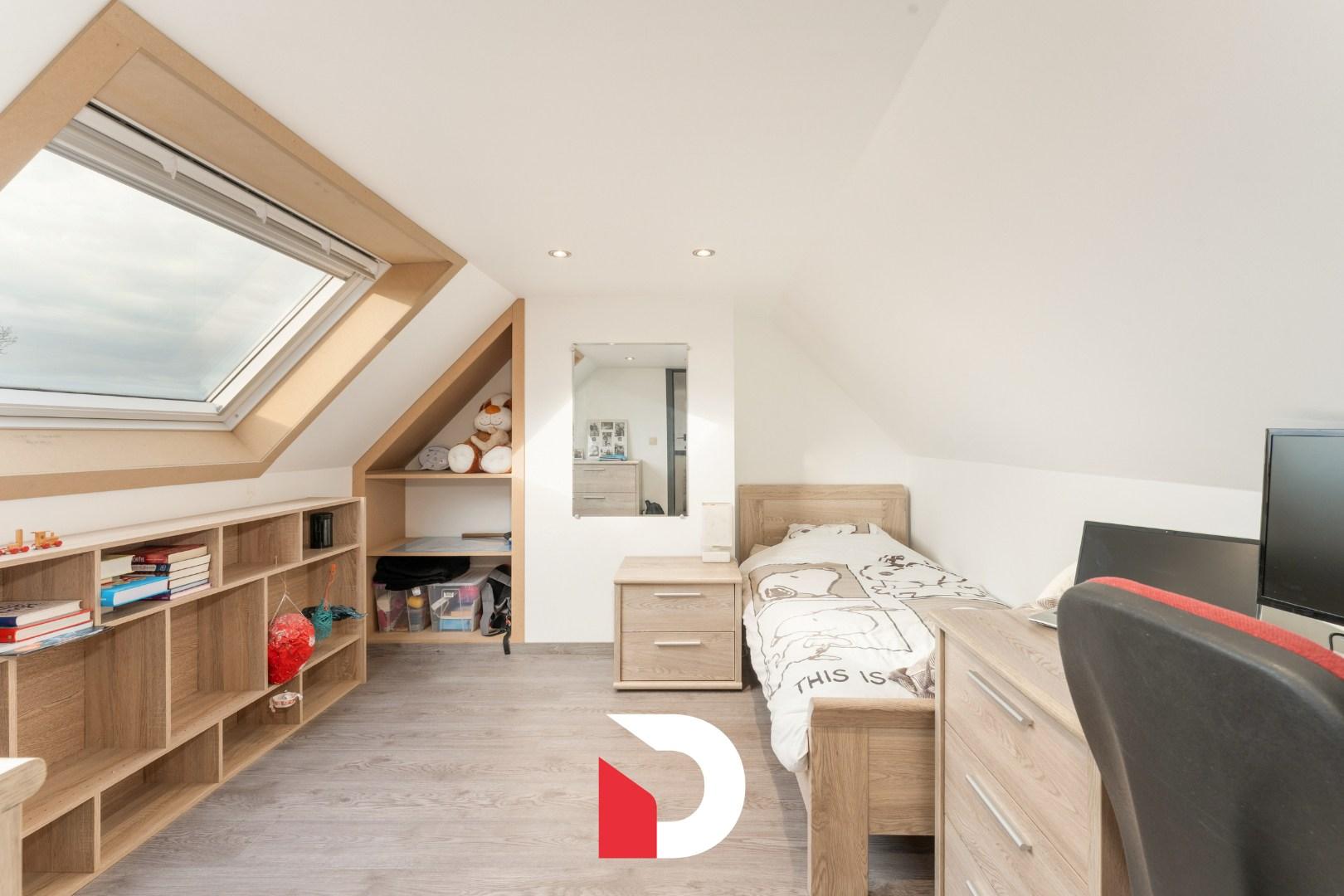 Op de eerste verdieping zijn er 3 volwaardige slaapkamers en een gerenoveerde badkamer voorzien van een douche EN ligbad en toilet. Er is een vaste trap die toegang geeft tot de zolder die recent ingericht werd als een 4de slaapkamer / bureelruimte. Op deze manier wordt iedere cm van de woning uiterst functioneel benut.