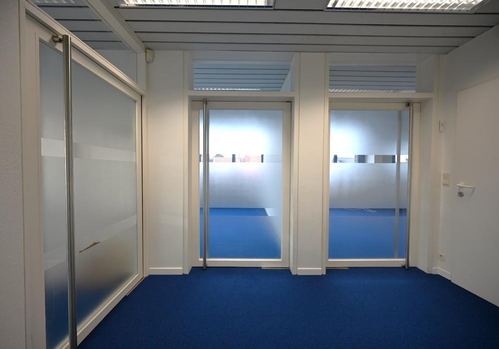 De ruimte kan d.m.v. systeemwanden onderverdeeld worden in verschillende kantoren.