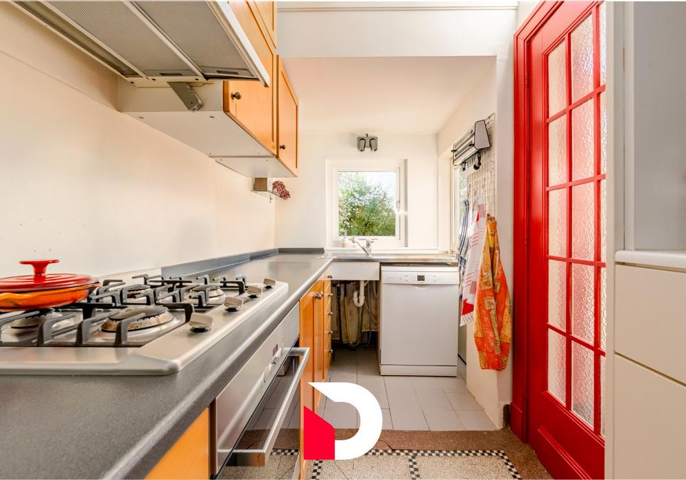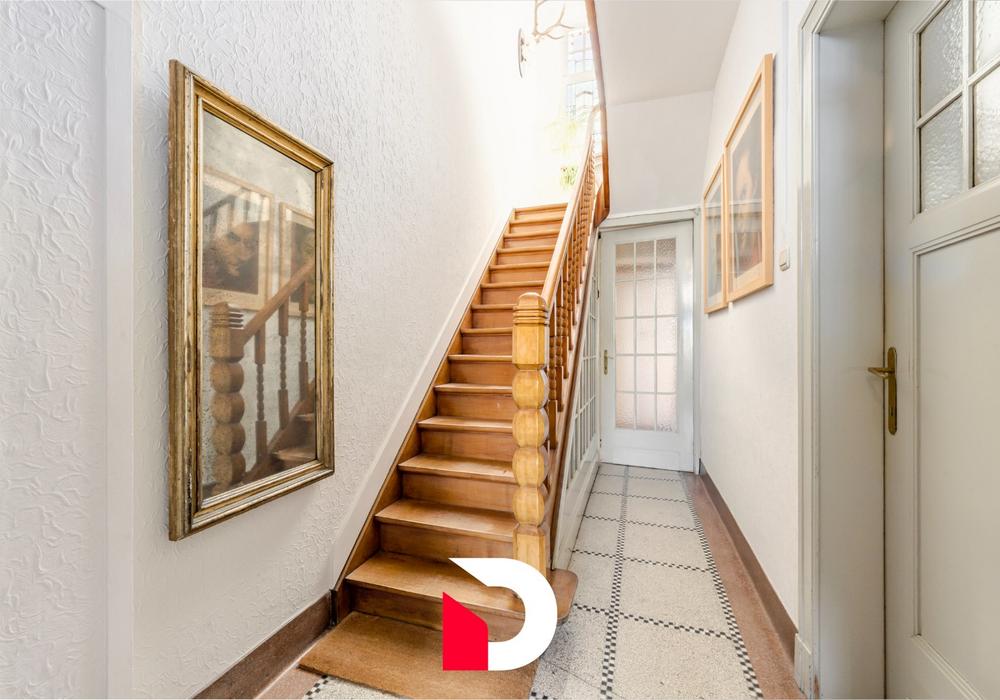 Via de statige inkomhal betreden we de woning, een 3-delige leefruimte met voorplaats, centrale zitplaats en achteraan een 3e woonplaats/eetkamer met zicht op de tuin. Hiernaast vinden we de keuken terug en apart gastentoilet.