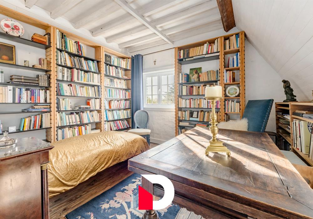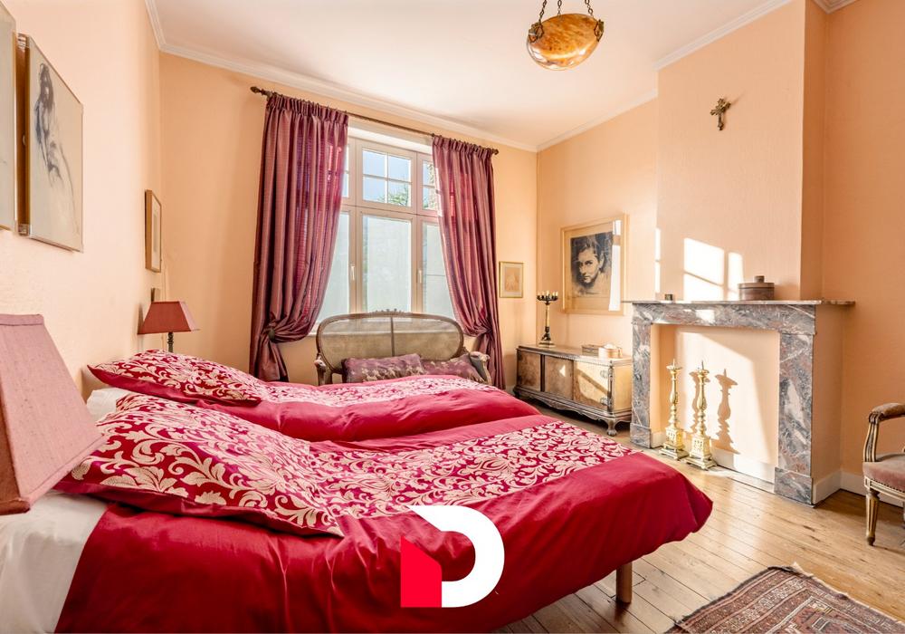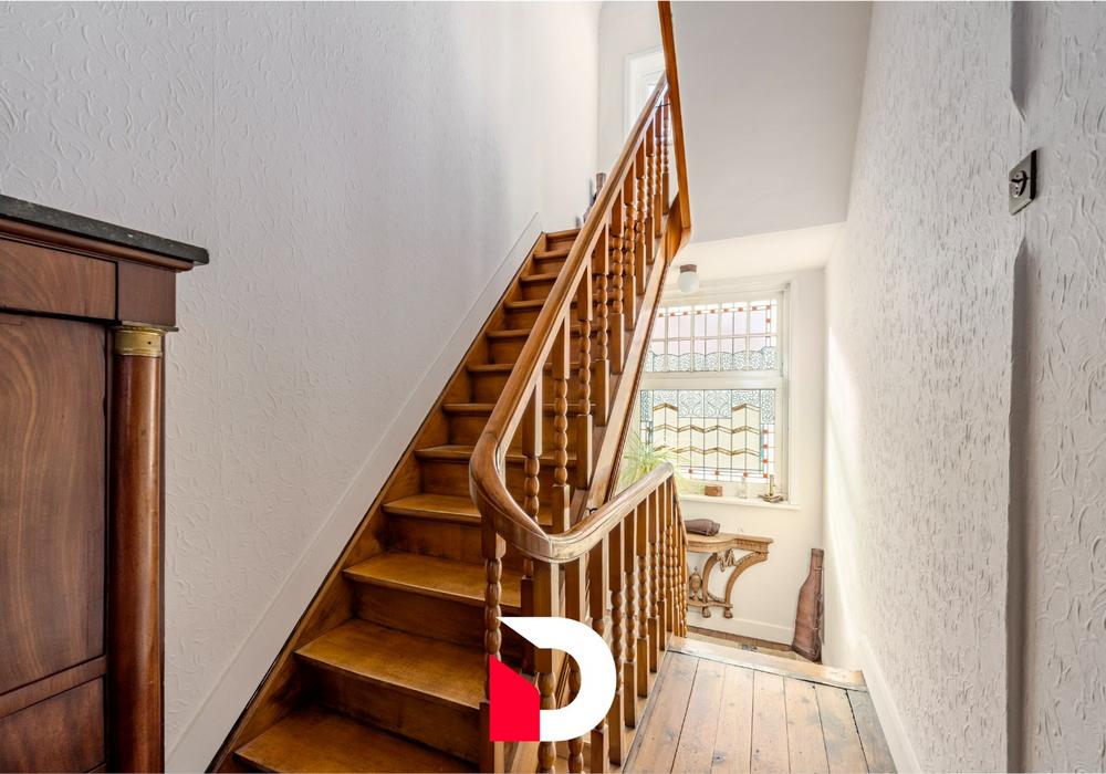 Via de prachtige trappenhal begeven we ons naar het eerste verdiep, waar we 2 ruime slaapkamers en een badkamer terugvinden. De kamer aan de voorzijde beschikt over een idyllische erker met zicht op het kanaal.