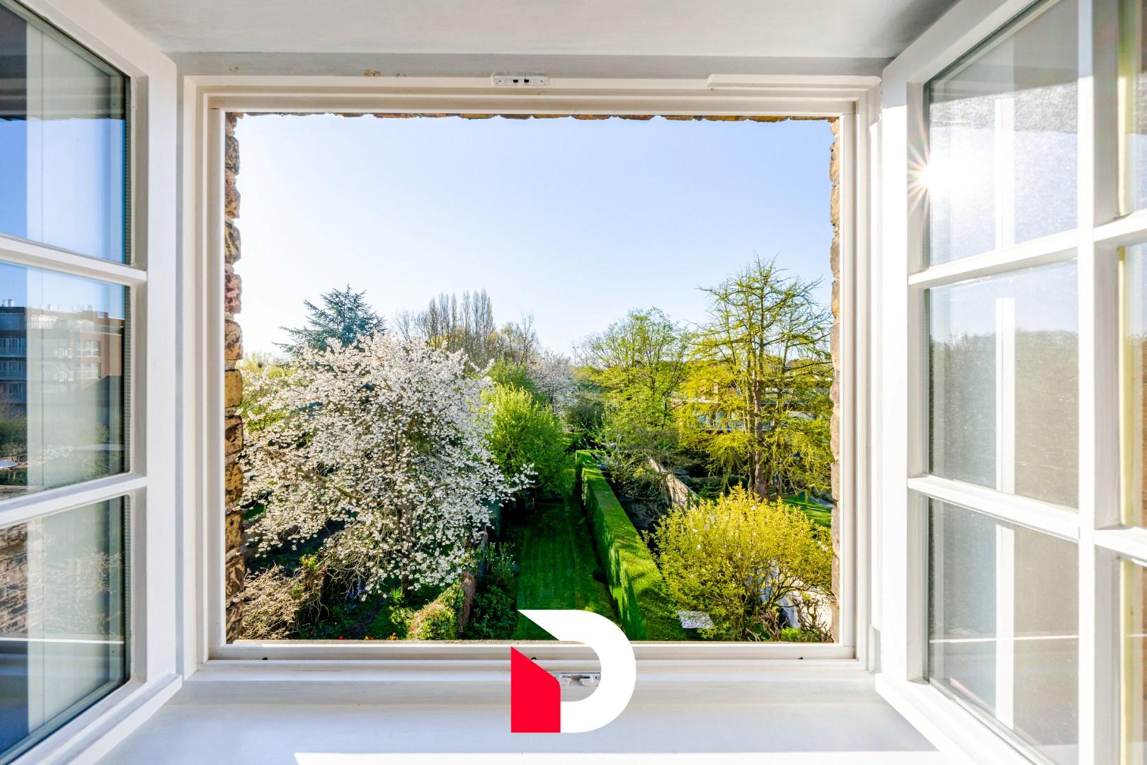 De woonst beschikt over een prachtige tuin, omringd door tal van prachtige volwassen bomen, waardoor u zich in een oase van groen begeeft. De tuin is diep en perfect georiënteerd. Uniek op deze locatie dichtbij het stadscentrum.