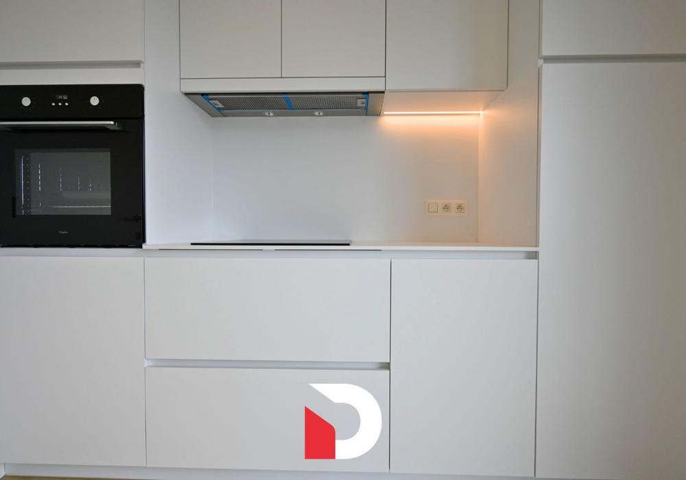 De uiterst gezellige leefruimte is opgesplitst in een zithoek met annex open keuken en eetplaats. Het appartement geniet enorm veel natuurlijke lichtinval.
