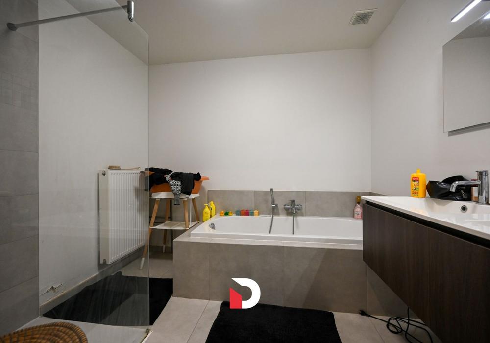 De zeer recente woning ('2019) beschikt over een inkomhal, aangename leefruimte met zicht op de leuke tuin, een half open keuken met annex een berging, 3 slaapkamers , een badkamer met ligbad en douche, wasberging en 2 WC's. Verder beschikt de woning ook over een Zuid-Oost-georiënteerde tuin met terras en een stuk gazon. De woning is zeer energiezuinig opgevat, en is afgewerkt met kwalitatieve materialen (oa. keramische parketvloer, etc). Bij aankoop van de woning wordt dient de ondergrondse parkeerplaats te worden aangekocht t.w.v € 25.000,- . Deze recente woning wordt verkocht onder het registratierecht.