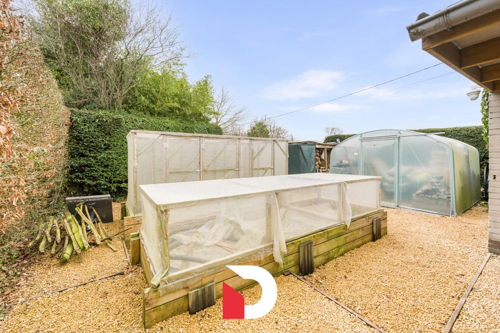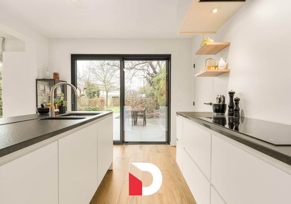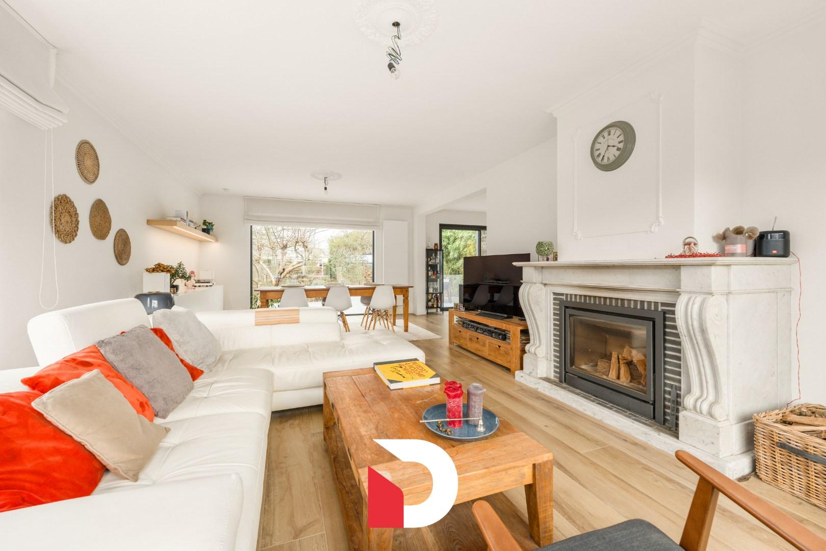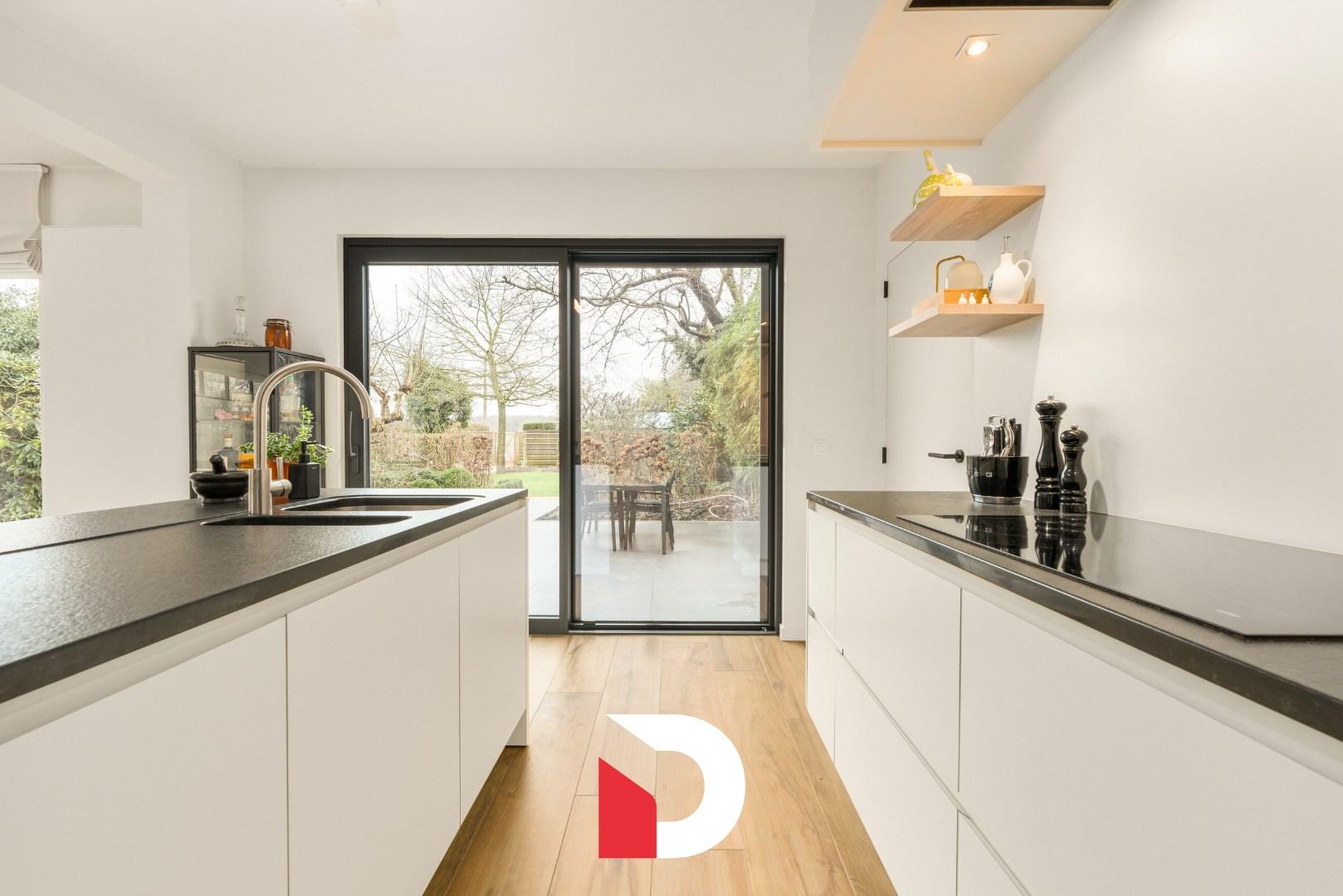 In het linkse deel vinden we dan de woonruimte terug, opgesplitst in gezellige zithoek met haard, eetplaats en annex open keuken die zeer recent vernieuwd werd. Verder vinden we nog een wasplaats terug en schitterend uitzicht op de unieke tuin.