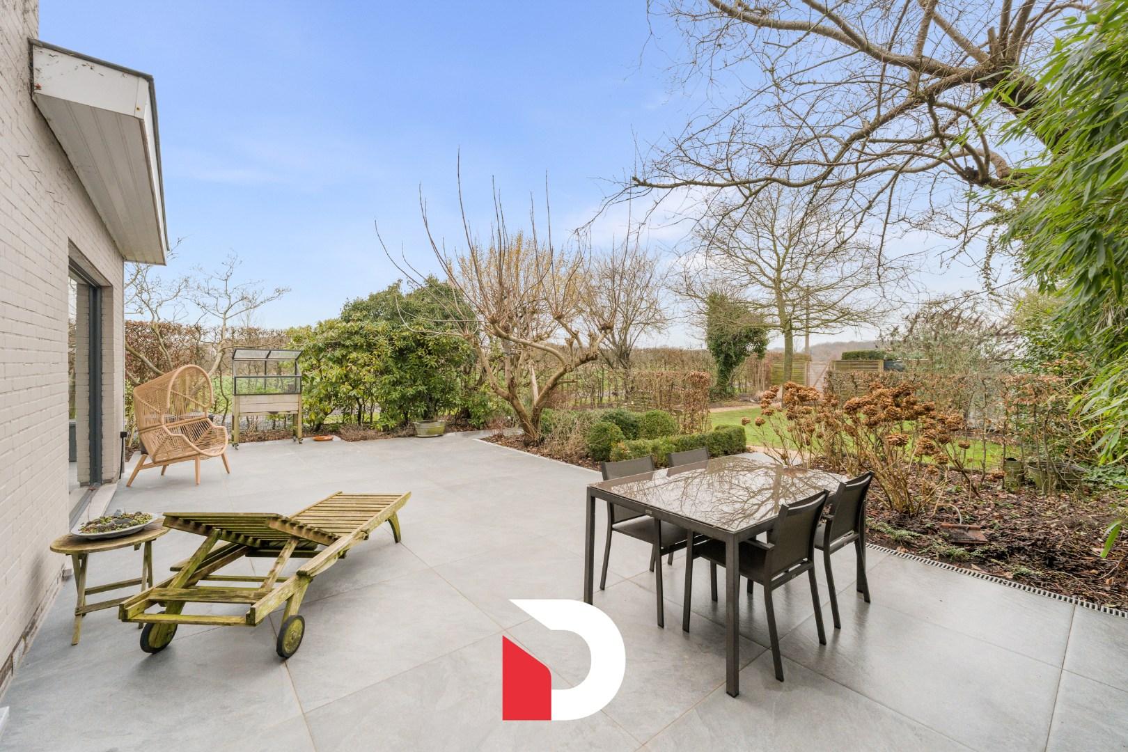 Wanneer we ons in de tuin begeven ervaren we een oase van groen, meerdere fruitbomen en een schitterend uitzicht op de naastgelegen agrarische gebieden. De zon heb je de volledige dag en het er is een unieke buitendouche aanwezig. Het terras zelf werd 1 jaar geleden heraangelegd.