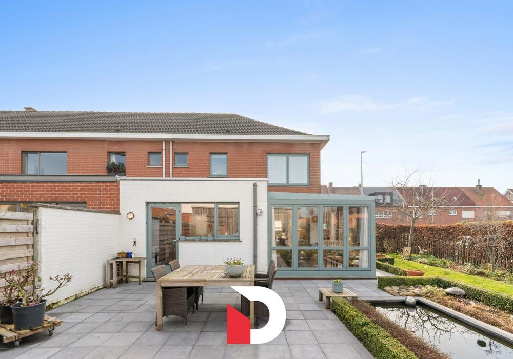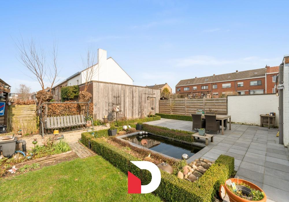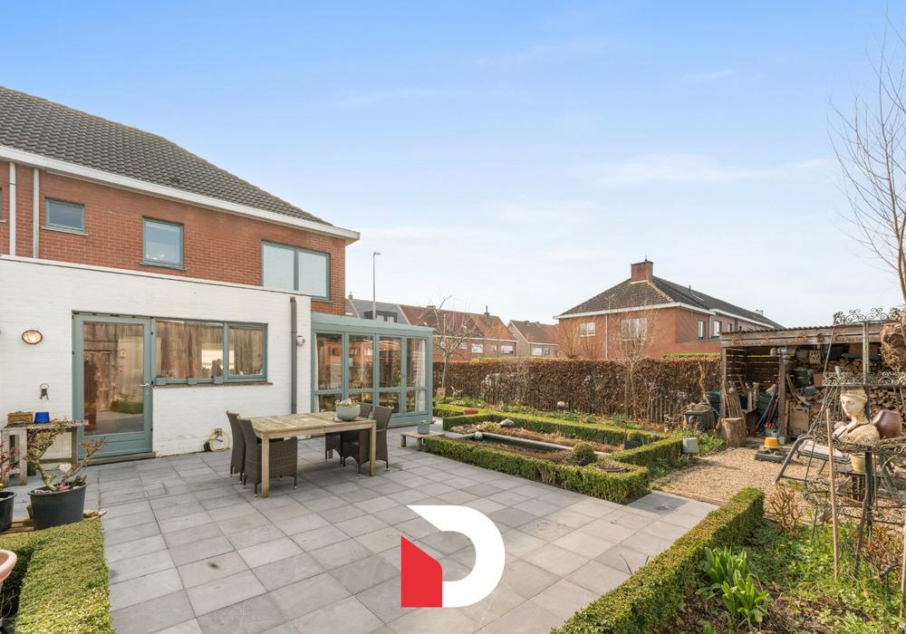 De woning beschikt op het gelijkvloers over een inkomhal, toilet, een inpandige garage, gezellige doorzon leef- en eetruimte, leefkeuken met inbouwtoestellen en een veranda. Op de verdieping zijn er 3 volwaardige slaapkamers en een vernieuwde badkamer voorzien. De woning beschikt eveneens over een spatieuze zolder die toegankelijk is via een vaste trap en uitgewerkt werd als een 4de slaapkamer. Op het naastliggend perceel, behorend tot het eigendom staat een 2e losstaande garagebox met een zijpoortje die uitgeeft in de tuin. De aangelegde tuin ligt half rond het huis waardoor je de ganse dag zon geniet vanop de verschillende terrassen waarbij ook de privacy gewaarborgd is.
