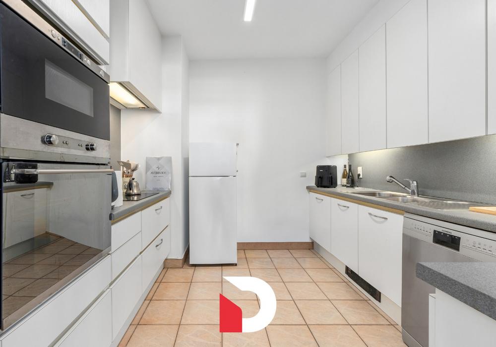 Bij het betreden van het appartement komt u binnen in een riante inkomhal, die meteen het gevoel van ruimte en comfort onderstreept. De lichtrijke leefruimte met eetplaats vormt het hart van het appartement en sluit naadloos aan op de volledig geïnstalleerde keuken. Verder beschikt het appartement over een praktische berging met wasplaats, wat zorgt voor extra comfort in het dagelijks gebruik.