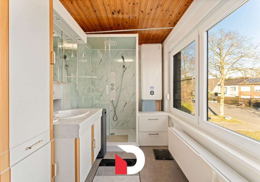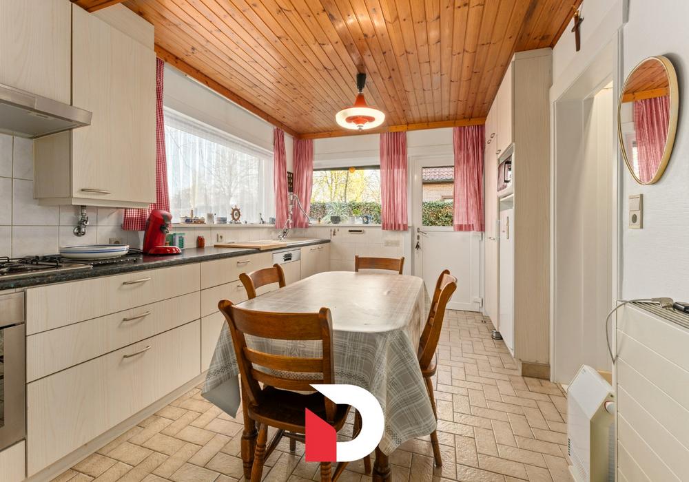 De functionele leefkeuken sluit naadloos aan op de living waardoor er kan nagedacht worden over een open keuken. De keuken is tevens bereikbaar via aan buitendeur opzij. Voorts vinden we op de benedenverdieping nog een toilet en een (was)berging annex de veranda. Gezien de ruime omvang van het perceel die 791 m² meet, betreft het tuinaspect een bijzondere troef van de woning. Deze fantastische tuin is een oase waar je volop geniet van rust, groen, privacy en een gunstige Zuid-West oriëntatie.