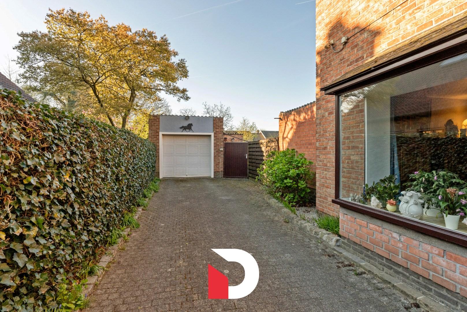 Opzij werd een garage met atelier/werkplaats gebouwd (+/- 75 m²) wat ideaal kan zijn voor het uitoefenen van hobby's of in combinatie met een vrij beroep. Op de oprit is er plaats voor meerdere wagens.
