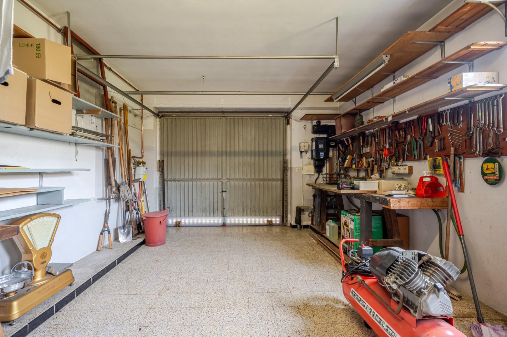 Op het gelijkvloers vinden we een inkomhal met gastentoilet, een lichtrijke leefruimte, keuken met bijkeuken en berging, een nachthal, een slaapkamer, badkamer en een inpandige garage. Op de verdieping bevinden zich nog twee ruime slaapkamers.